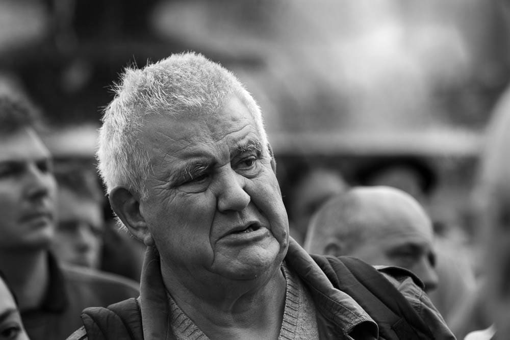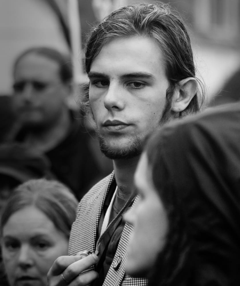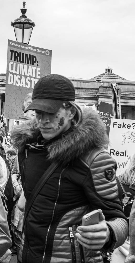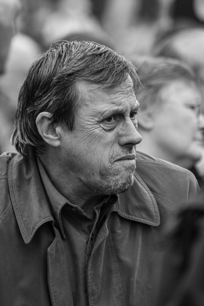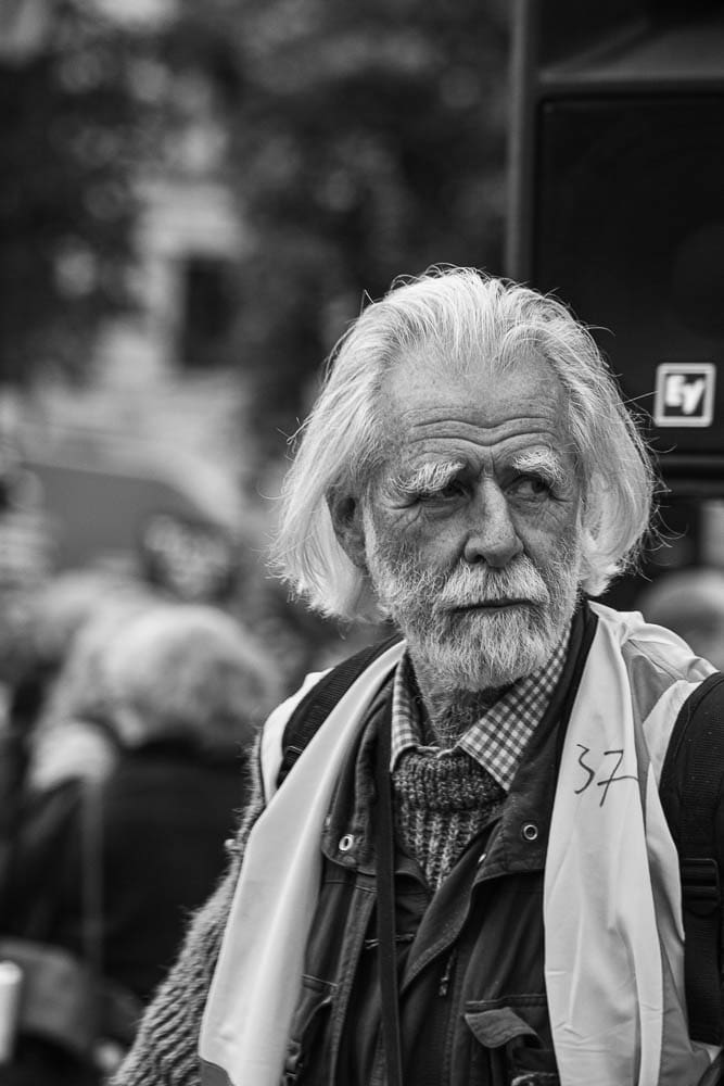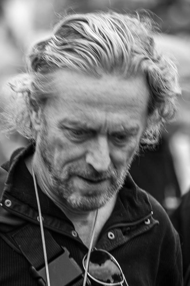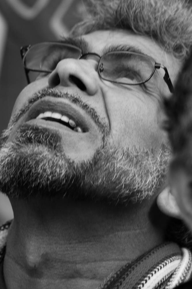 Poetry is expressed in text, on stage, in film and verse … I find it in the various aspects of Photography. Poetry is human, it begins with the senses, demands a strong response. My portraits look for those initial emotions, imagine what could follow. The majority of my portraits are made at public events where emotions are sincere and uninhibited. I attempt to record strongly felt responses to a contemporary issue: environmental, social or political, an issue where the stimulants to poetry are endangered. My subjects are motivated by an issue that is destructive, anti-poetic. Where poetry is smothered!